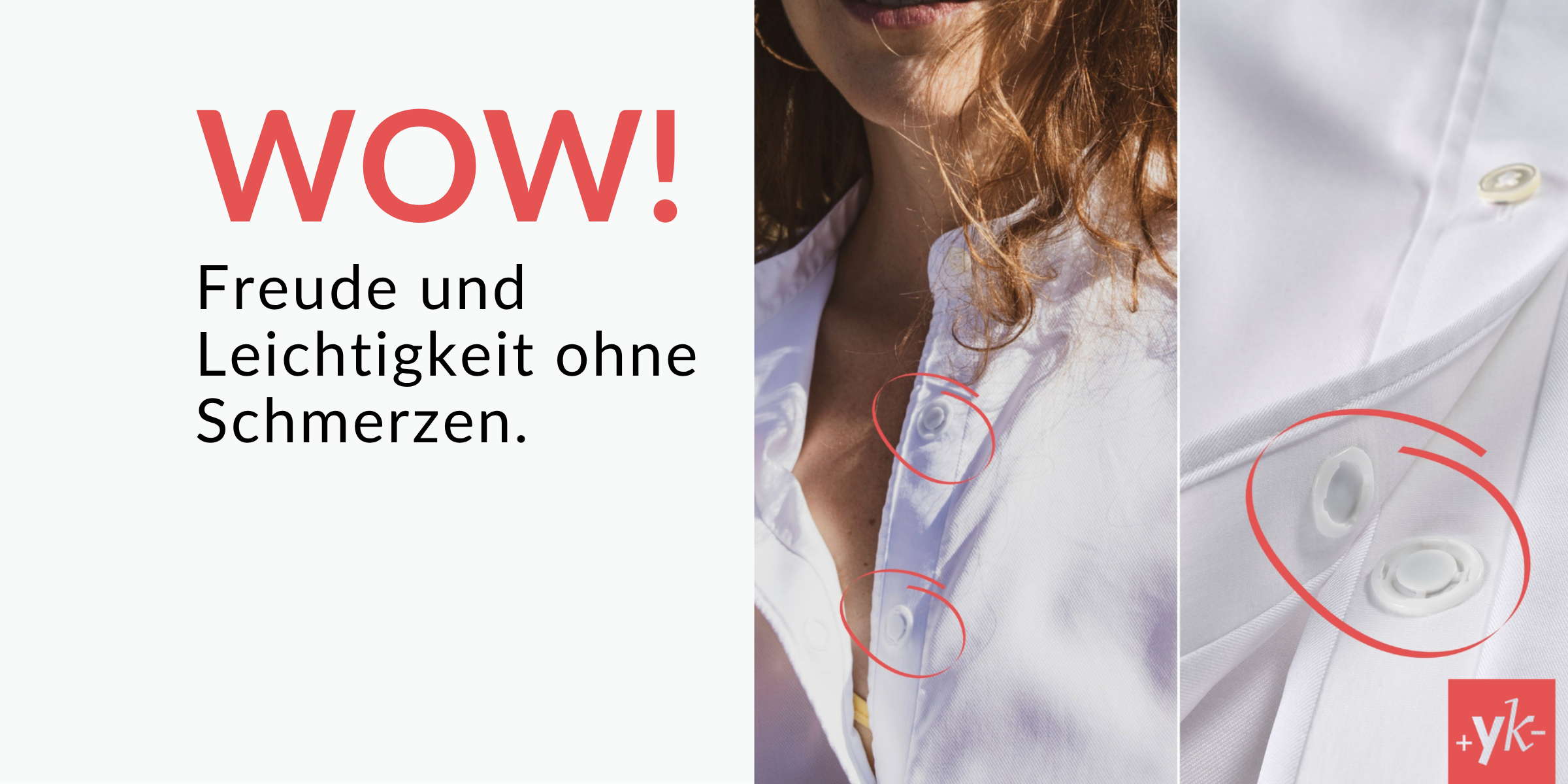 Stehkragen Magnetbluse - schneeweiß aus Baumwolle